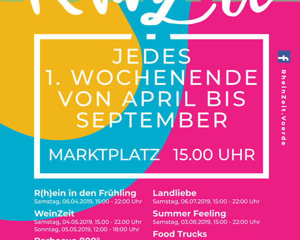 Bei der RheinZeit 2019 auf dem Voerder Rathausplatz am 06.07. zwischen 15-22 Uhr könnt ihr uns besuchen.